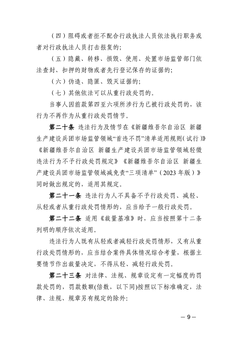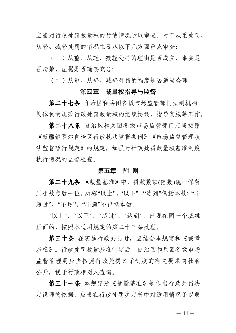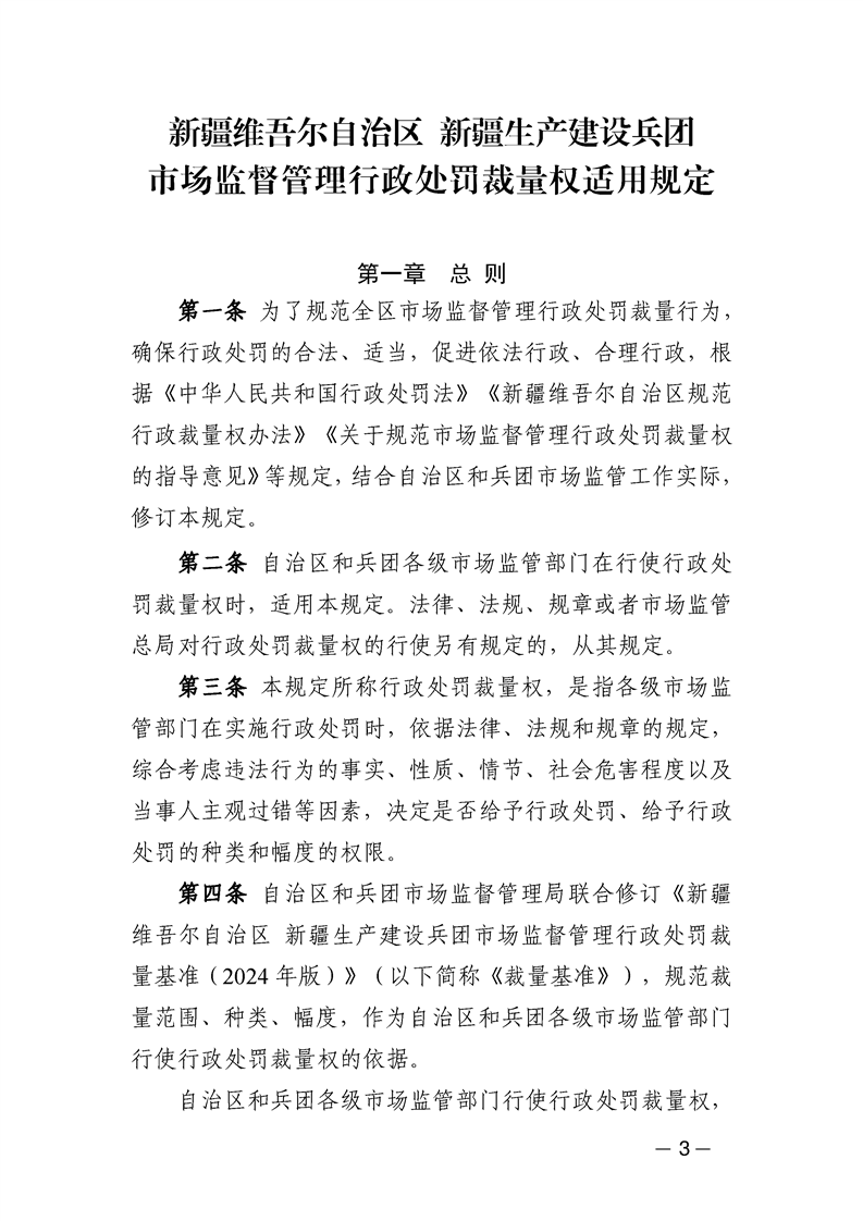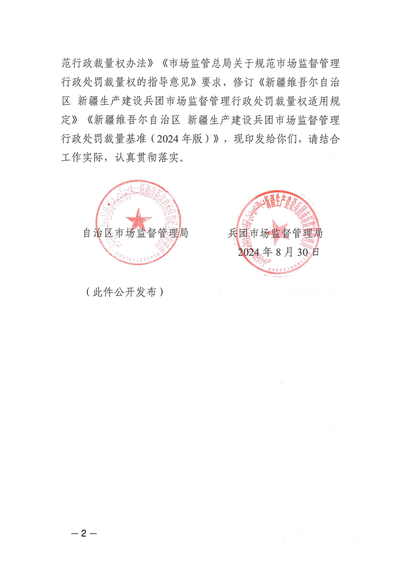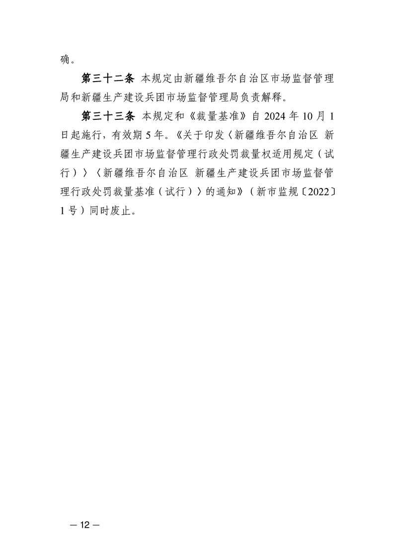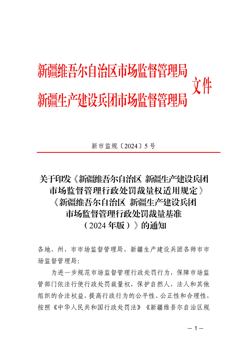 新疆维吾尔自治区市场监管系统自由裁量基准(2024年版)