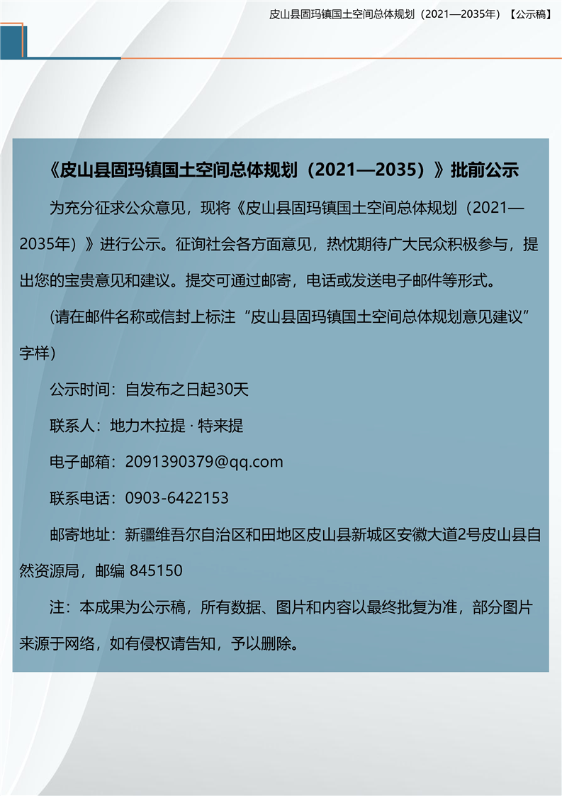 【重大行政决策事项意见征集信息】皮山县固玛镇国土空间总体规划(2021—2035年)【公示稿】