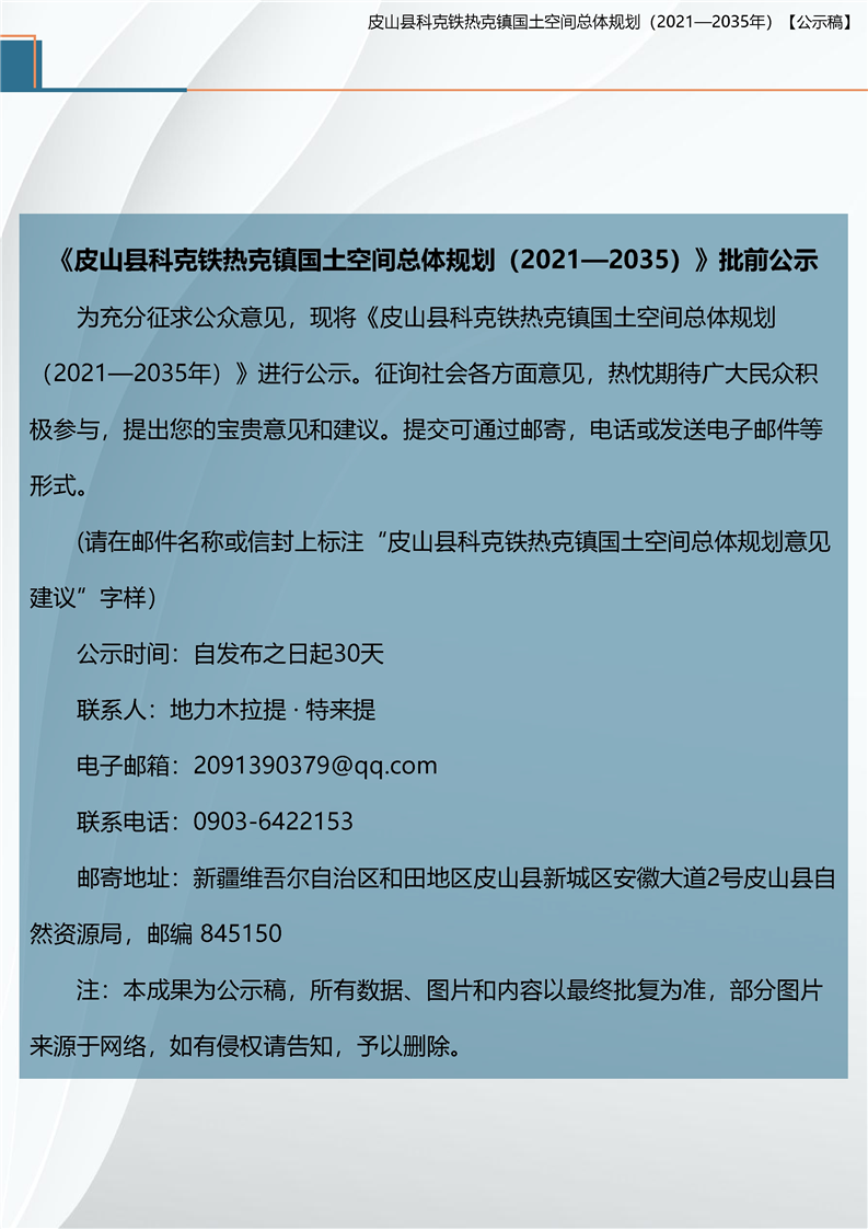 【重大行政决策事项意见征集信息】皮山县科克铁热克镇国土空间总体规划(2021—2035年)【公示稿】